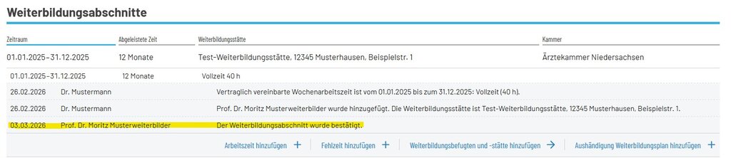 Bitte beachten Sie, dass Sie – sofern Sie derzeit Mitglied in der Ärztekammer Westfalen-Lippe oder Bremen sind – die Weiterbildungsabschnitte ausschließlich im Portal der Ärztekammer Westfalen-Lippe bzw. Bremen pflegen können.